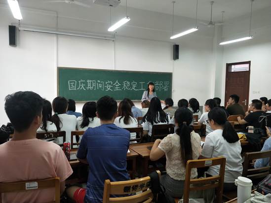 全体研究生分别在s楼411、412教室召开“安全稳定主题班会。研究生辅导员赵岩老师主持班会。