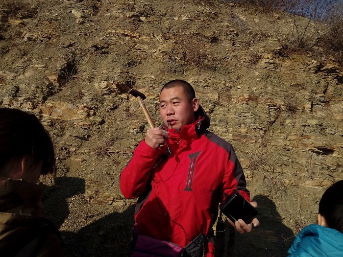 项目地点选择在省投资的于里镇土地整治项目区和自发筹资的中至镇土地开发项目区,同学们观摩了山地丘陵区梯田和山前平原区条田的土地平整和土地利用现况、水源选取和自流式地埋管道的布设、田间道和生产路的修筑形式,实地认知蓄水池、大口井、泵房、塘坝、涵、桥等多项重要的单体工程。在实习现场,五莲县监理公司工作人员对项目的初期规划、施工和建设中诸多要点做了详细介绍,刘坤老师就山地丘陵区土地开发和利用、水土保持等相关知识进行现场讲解,刘飞老师通过分析岩层剖面和岩石样本向同学们介绍了项目区所在地的地质演变过程,王萍老师则不断提醒同学们将现场观察的田、管、沟、路、林布局情况与课堂讲解的理论知识联系起来。同行的李剑老师、吕晓老师,也都针对同学们的提问一一进行了解答。