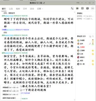 除了正常的线上教学,及时线上解答学生问题,急学生之所急。《城市总体规划》《人文地理学》等课程,针对学生的困惑与问题,及时回复。由于本学期还承担了7位同学的教育实习指导任务,每周都会对7位同学进行集中指导,进行集体备课,团队磨课,群策群力,提升每位同学的授课技能;此外还建立了打卡学习制度,每周每位实习同学提交1份3页的硬笔字,1幅板画,1份诗歌朗诵,提高学生的教学基本功。