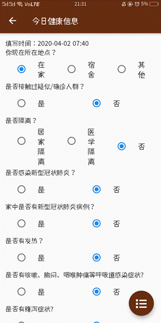 里也会派领导和督导专家老师共同听课,防止老师的怠慢心理,监督老师的教学质量。为了了解同学们在家的健康状况,每位同学每天都需要将自己的健康状况上报学校。