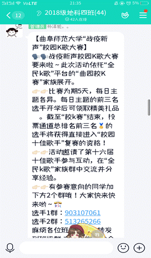 考虑到同学们的居家生活难免有些枯燥无味,色彩单调,根据实际情况,精心策划了多种多样的活动供大家参加,如最美笔记的评选,视频演讲比赛,“战疫新声”校园K歌大赛……同学们在这些活动中找寻乐趣,与好朋友们互动交流,为我们的生活增添了些许的色彩。