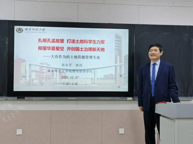土地资源管理的专业特色、师资力量、科研实力、学业成效。同时,他就土地功能、原生土地问题、次生土地问题、社会土地问题等内容进行详细讲解,阐述了我国土地资源现状,指出土地管理者的责任为发现问题、探究原因、提出对策、化解矛盾、提高土地效益、促进社会和谐发展,激励同学们在认真学习专业知识的同时将专业知识与实践相结合。