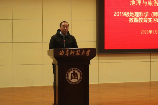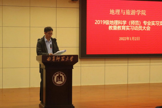 党委书记苏占兵、院长张全景、党委副书记刘伟出席会议。全体教育实习指导教师、辅导员和2019级地理科学(师范)专业及地理公费师范生全体同学参加了动员大会。副院长吴军主持动员会。