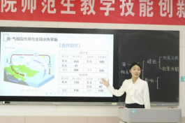 比赛设置高中组和初中组两个组别,包括固定题目模拟授课、答辩和钢笔字考查三个环节,综合考查地理师范生教学技能。比赛过程中,42名地理师范生通过模拟授课和现场抽题作答进行激烈角逐。模拟授课环节,参赛选手以别出心裁的教学设计、丰富多样的教学方法,展现出较强的教学能力;现场抽题作答环节,参赛选手沉着冷静,清晰作答,展现出良好的个人素质。