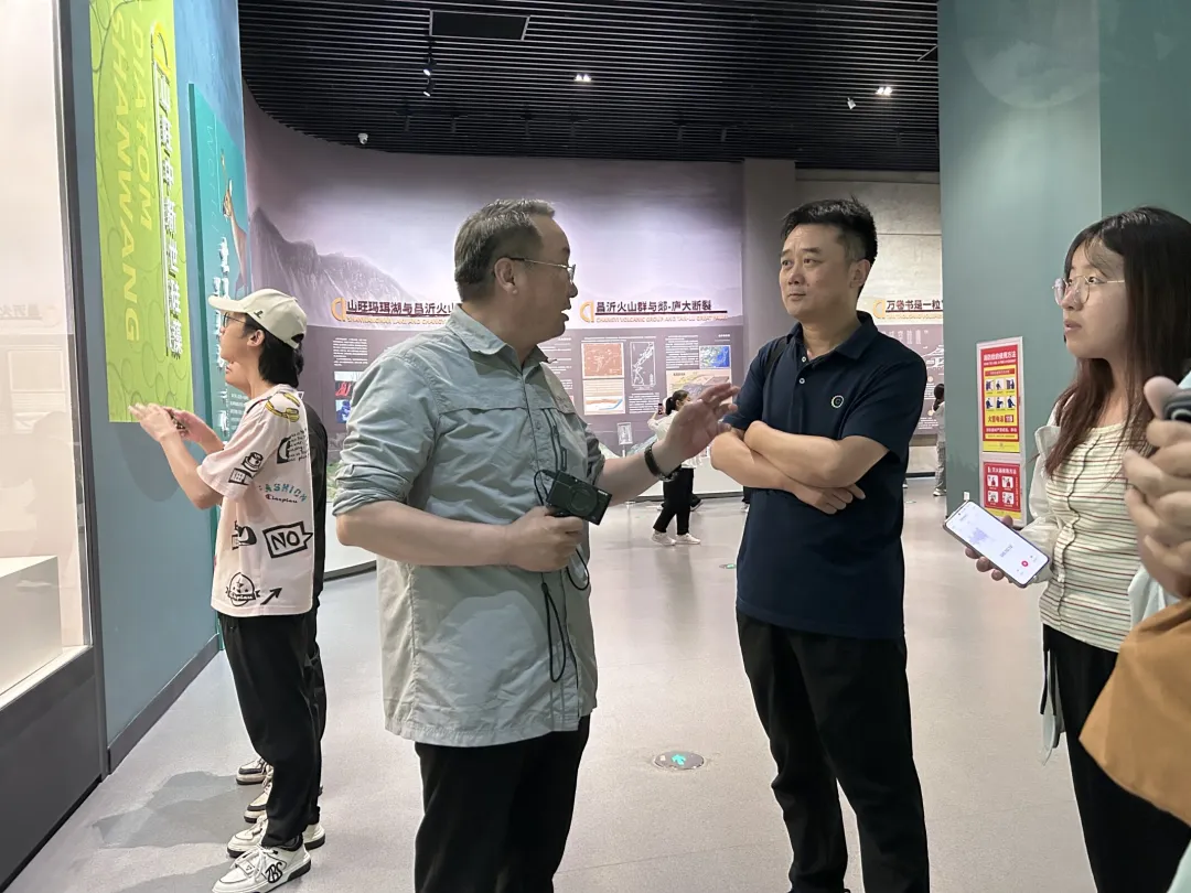 6月23日,师生们前往昌乐乔官镇远古火山地质公园、临朐县博物馆展开地质地貌实习。昌乐火山地质公园以火山地貌为主题,拥有新近纪火山活动形成的火山锥和玄武岩柱状节理景观。临朐县博物馆是国家一级博物馆,馆内设有距今1800万年的山旺生物群化石展厅。同学们在老师们的引导下,考察学习了昌乐火山玄武岩及火山地貌,通过观察山旺生物群各类化石,深入了解了新生代地层及古生物,推演当时的古环境状况。实习过程中,同学们认真观察,仔细记录,收获颇丰;各位老师针对同学们提出的问题,给予了细致而专业的解答。