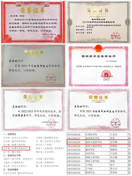 研究生会副主席及2020级地理学副班长。先后获得曲阜师范大学研究生教育创新计划奖、研究生国家奖学金、山东省优秀毕业生以及山东省优秀学生等荣誉称号,2023年考入中国科女足直播