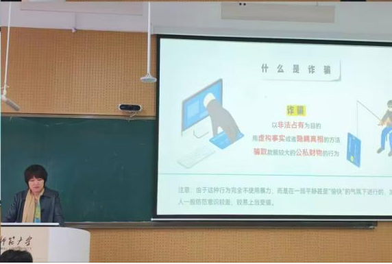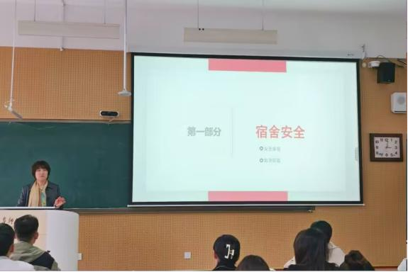 实际情况,详细讲解宿舍安全、交通安全、实验室安全以及谨防网络诈骗等方面的知识。针对当前网络诈骗频发的现状,她详细讲解识别和防范网络诈骗的技巧,提醒学生们时刻保持警惕,保护好自己的个人信息和财产安全。
