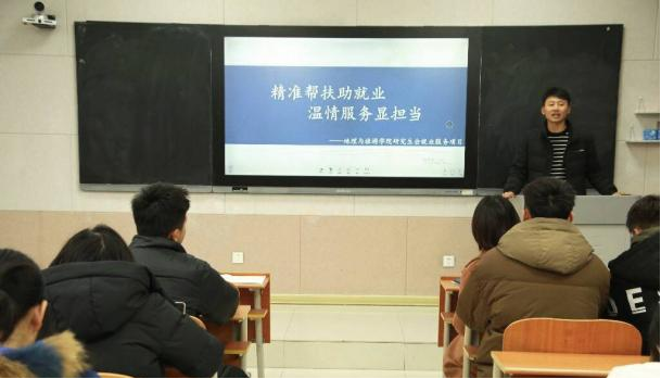 研究生会主办了一系列主题活动。研究生会主席杭庆厚介绍了我为同学做实事“精准帮扶助就业,温情服务显担当”项目,该项目的实施正是研究生会传承和践行雷锋精神的具体实践。