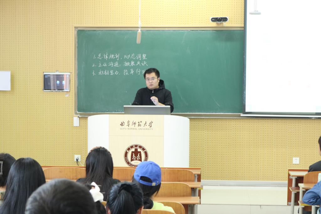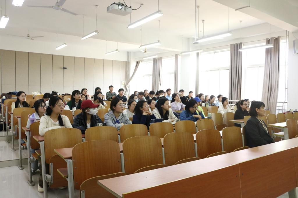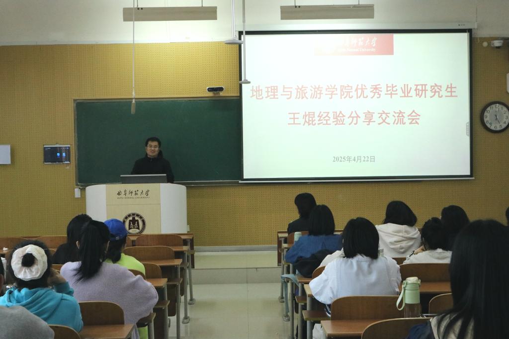 在科研道路上卓有成效的2024届优秀毕业生、华中师范大学博士生王焜,研究生辅导员赵岩主持,全体专硕研究生参加。