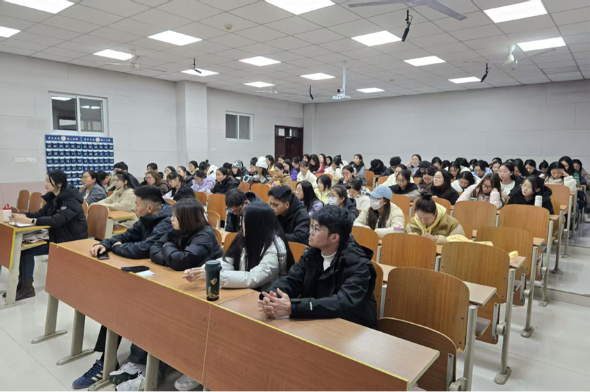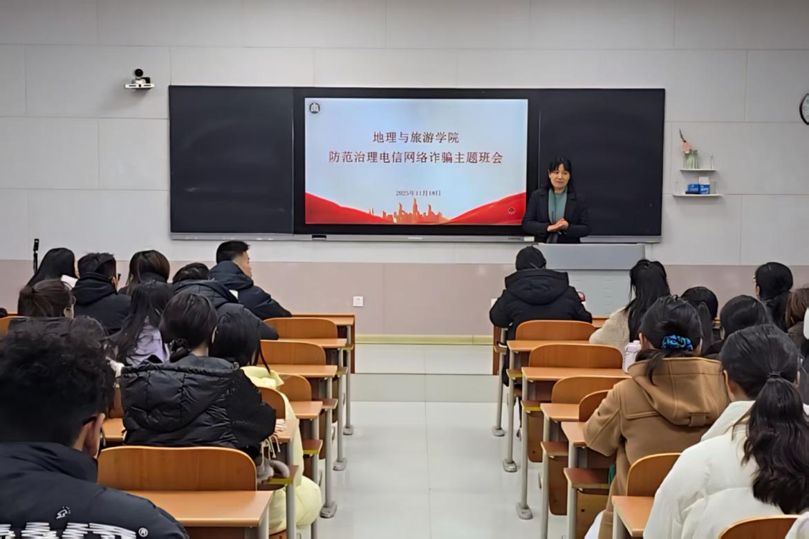 于S205教室召开研究生防范治理电信网络诈骗主题班会。会议由辅导员赵岩主持,2025级全体研究生参加。