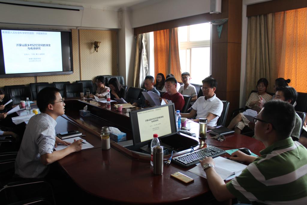 会议伊始,项目组成员张学波副教授围绕项目的选题背景、研究价值、研究内容、重点和难点、技术路线与方法等进行了详细汇报,随后陈明祥教授首先进行了点评,他在肯定课题研究意义的同时,也认为在报告中应明确提出研究沂蒙山区的原因。随后,王铁、石峰、武传震、吕晓等各位老师依次发言,对项目成果凝练、人地关系研究视角的切入等方面对推进项目研究提出了建议。