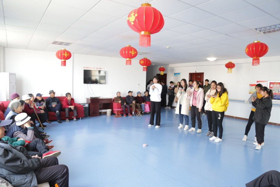 本科生党支部成员及社团成员扬着热情,顶着寒风,早早结队来到敬老院,慰问老人,并用自己的实际行动服务老人,传播温暖。党员们自发地分配区域,为福利院进行卫生清扫,分工明确,配合默契,不畏寒风,踏实肯干,充分展现出党支部成员们吃苦耐劳的精神面貌。同时,社团成员发挥自身特长,为老人们奉上精彩的表演,并组织合唱《我和我的祖国》,悠扬的歌声与欢声笑语相伴,气氛融洽和谐。表演过后,所有成员利用自由活动时间,与老人们聊天谈心,询问老人们的身体状况,听他们讲述伟大祖国几十年的腾飞历程,党的一心一意为人民。学生党员朱奕衡表示,通过老人们恳切的言语,自己更加深刻的意识到身为一名共产党员的荣誉感与责任感,表示在今后的学习工作中,将不忘初心、牢记使命,为人民服务。