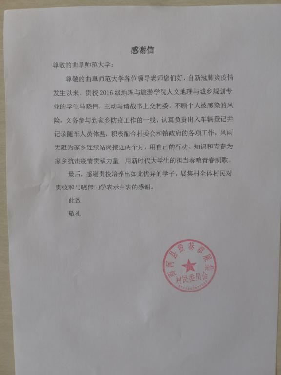 收到了来自济南市地方村委的一封感谢信,感谢澳洲女足直播