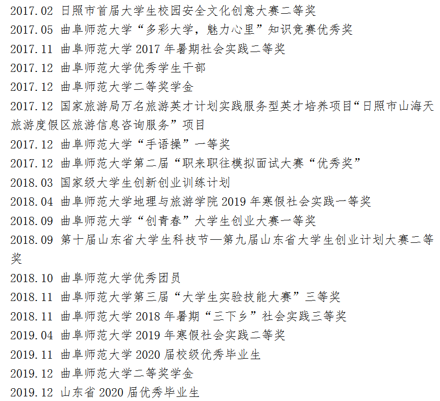 回顾我的大学四年,确确实实是一部成长史,自觉不虚此行。担任班长、学生会部长;在各种竞赛和文体活动中获奖;参与专业课老师的课题项目;组织国家级社会实践;参加春训;在景区和酒店专业工作实习;加入中国共产党;找工作、拿offer;考上研究生...犯过一些错误,失败也同样经历了不少。
