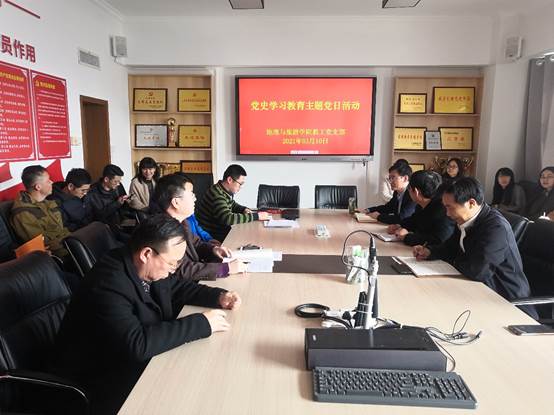 教工党支部在会馆2401组织开展党史学习教育主题党日活动。活动由教工党支部书记刘志刚主持。