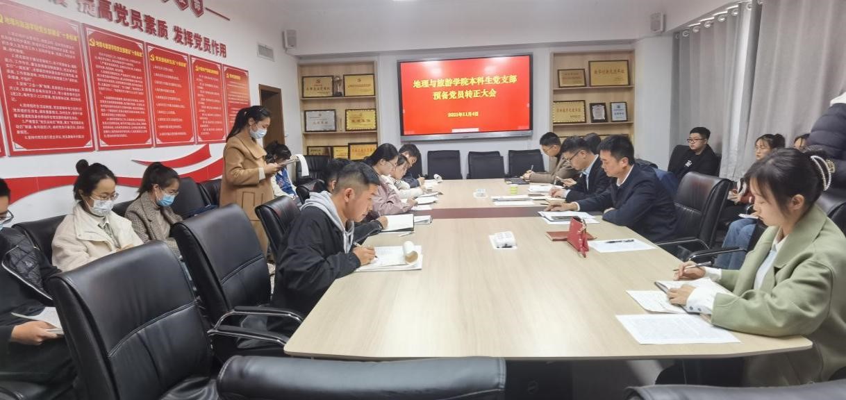 本科生党支部于会馆2401召开预备党员转正大会。会议由支部书记田青主持,党委副书记刘伟出席,支部全体党员参加。