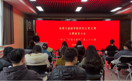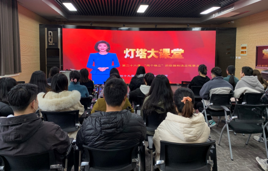 研究生党支部组织全体党员集中观看“灯塔大课堂”第二十六课《“两个确立”的依据和决定性意义》,会议由支部书记马振秀主持。