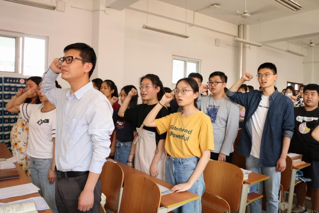 本科生党支部组织开展重温入党誓词主题党日活动。活动由支部书记田青主持,党委副书记刘伟出席,支部全体党员参加。