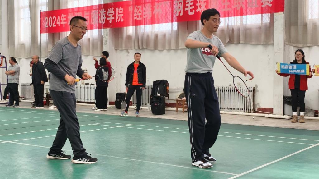 在日照校区体育馆举办“经纬杯”羽毛球师生联谊赛。按照系别、专业组成的16支师生参赛队伍参加角逐。