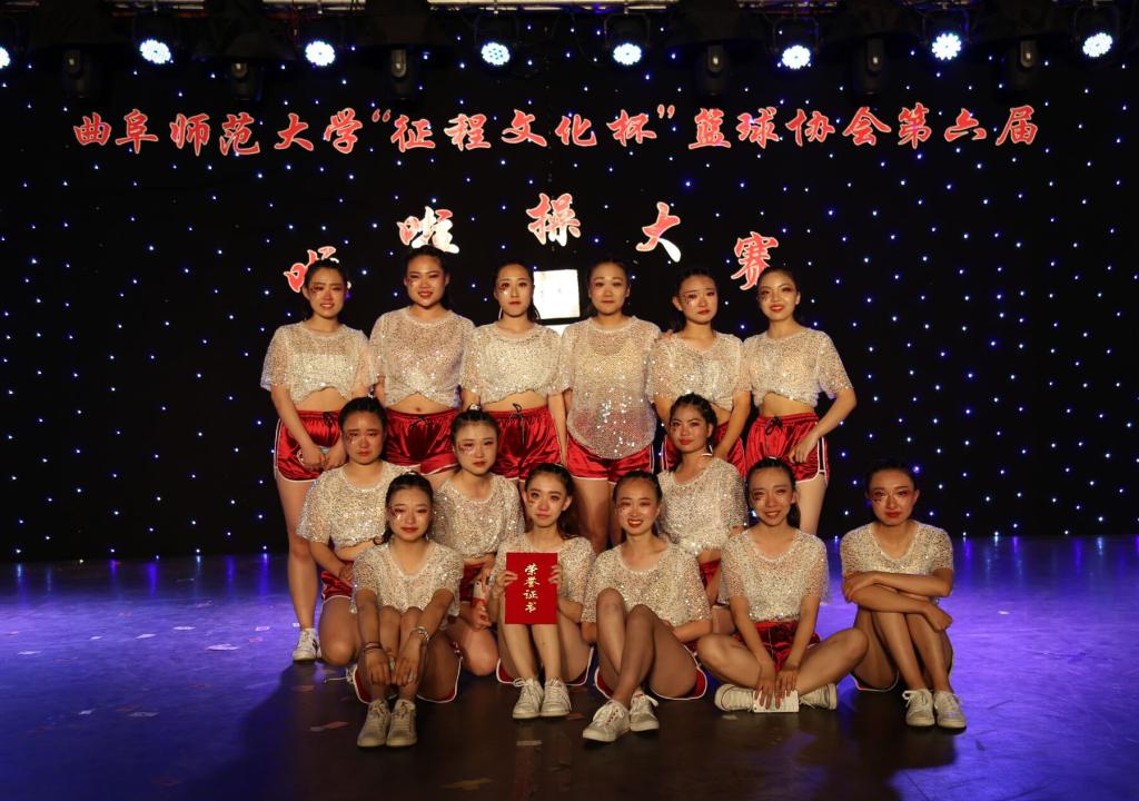 参加本次比赛,给现场观众带来一场视觉盛宴。队员们经过长期的刻苦训练,展现了高超的舞艺,动作充满挑战而又不失精准,整齐划一,表演时始终面带自信的微笑,嘹亮而又充满激情的音乐感染着现场观众,精彩的表演赢得阵阵掌声和欢呼。最终,经过评委打分、大众评审打分,获得9.08的高分,荣获曲阜师范大学第六届啦啦操大赛二等奖。