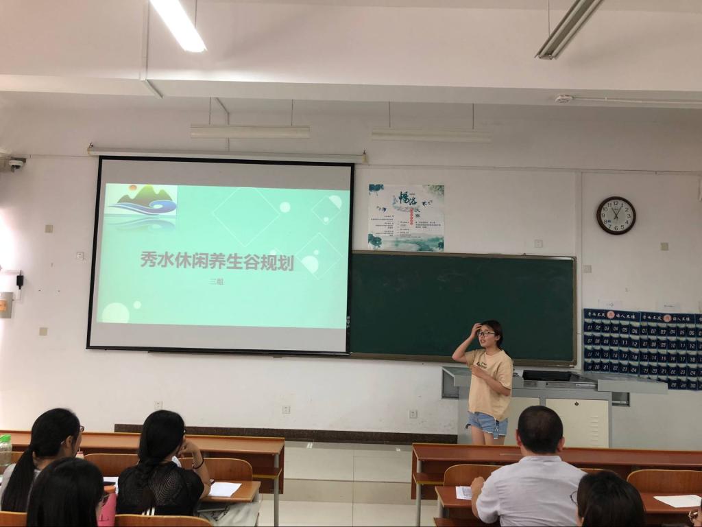 汇报过程中,各实习小组依次进行成果汇报展示。汇报人从资源分类评价、市场定位、功能分区、景观设计等方面全面细致的介绍了小组实验结果。各小组汇报内容丰富,专业性强,不时迎来阵阵掌声。会后武传震老师逐一对试验成果进行点评,并指出规划实验是旅游规划课程的重要组成部分,对于提高同学们理论与实践的对接具有重要的作用,通过实验可以让大家从理想的教室走到真实的社会中,从而让所学能所用,所思也能所用。