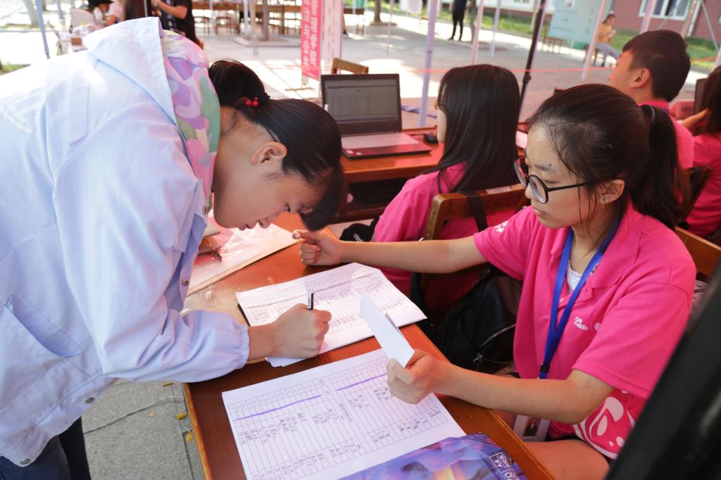 大家庭。清晨,学生会工作人员来到迎新地点进行布置,为迎新工作做充足准备。