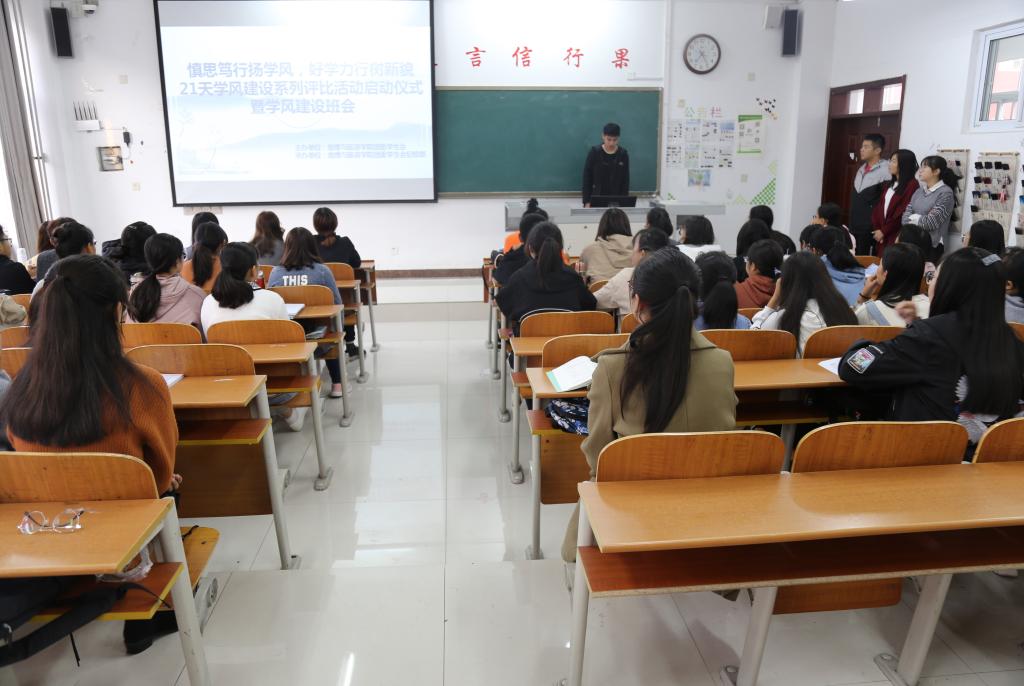 “21天学风建设”系列活动启动仪式顺利举行。此次活动由团委学生会主办,纪检部承办,2018级全体同学参加。