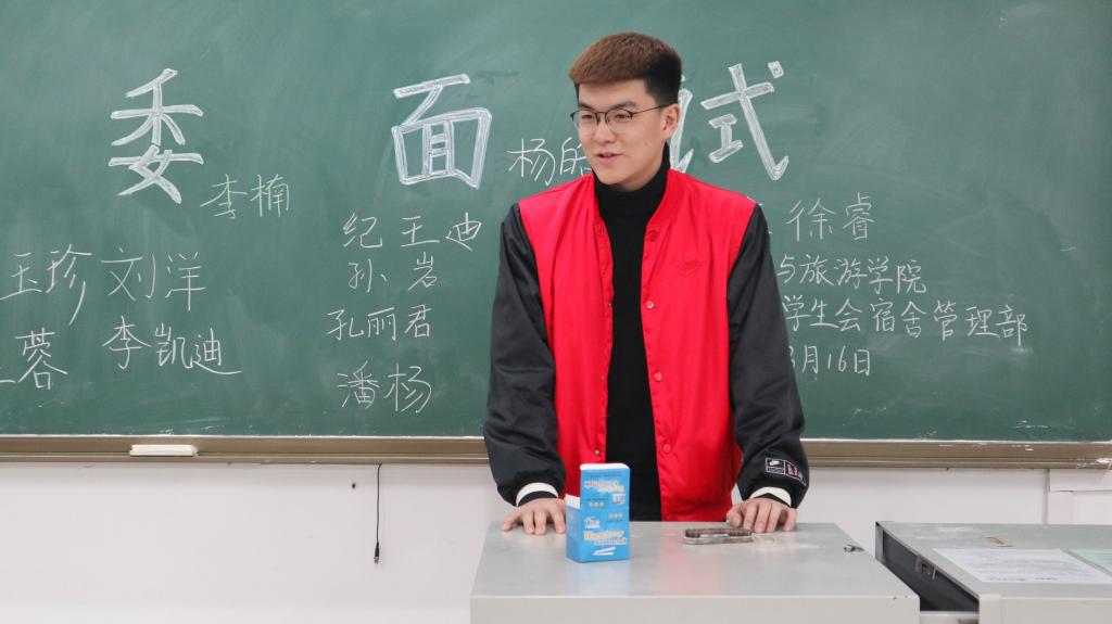 于JS402举行宿舍管理委员会纳新面试,本次活动由团委学生会主办,宿舍管理部承办并由其成员担任评委,2018级部分学生参加。