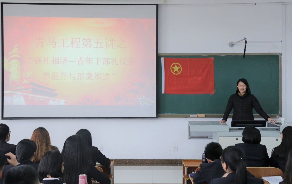 团委书记宁晓文主讲“德礼相济——青年干部礼仪素质提升与形象塑造”,团委学生会全体学生干部参加。