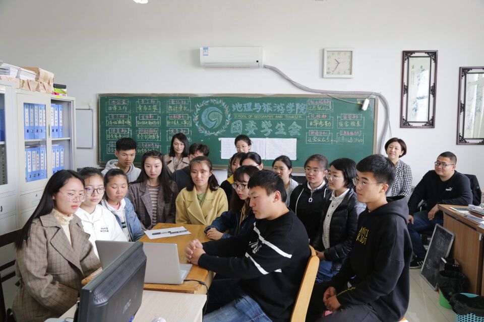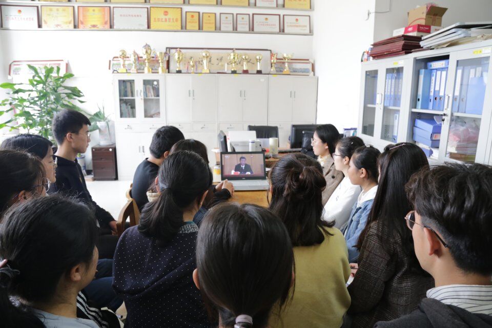 团委书记兼2018级辅导员宁晓文、2015级辅导员李梅、2016级辅导员陈鑫、2017级辅导员刘翔及学生干部集体观看。