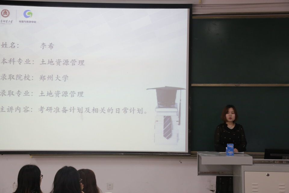 会议伊始,主持人对参加此次交流会的嘉宾进行简要介绍,并指出此次交流会主要针对旅游管理、土地资源管理专业的学生进行考研各方面信息的交流。五位学生代表分别从选择报考学校、准备复习资料、调整考研心态、合理分配时间、各科备考方法等方面进行多角度讲解。高梦雯、李希、杨学敏、姜爽爽向同学们讲授了考研如何制定计划及调整心态的方法,鼓励同学们既然决定了考研就一定要坚持到底。薛淑慧给出了解考研信息的途径并针对有关调剂的问题向同学们作出介绍,她指出要着重留意报考院校的电话及导师信息,密切关注考研招生网的信息。