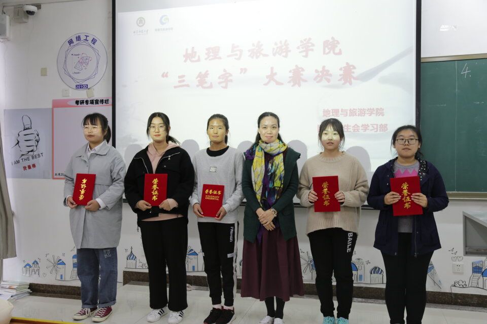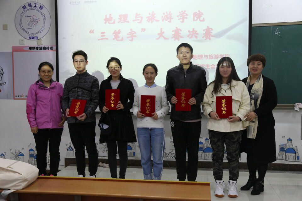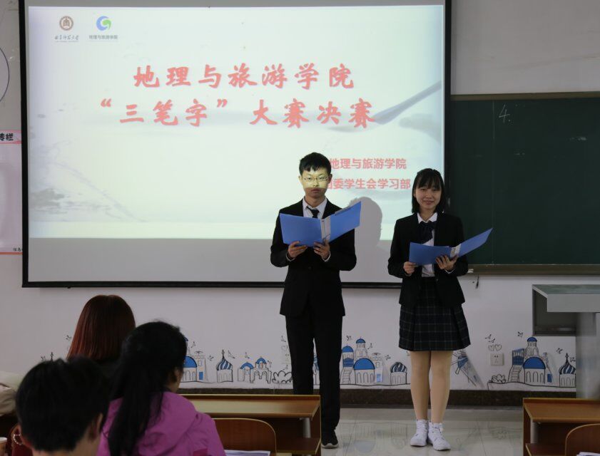 本次大赛的比赛内容包括钢笔字、毛笔字、粉笔字三部分,参赛者在比赛前期认真练习,比赛时他们个个精神专注,尽情展现书写功底,粉笔字书写规范、整洁,版面设计美观;钢笔字下笔刚劲有力,笔画清楚、字距匀称,笔画流畅分布均匀;毛笔字运笔正确,起笔行笔收笔清楚,字体结构合理。不同的书法形式向观众展现出不同的精彩。评委老师认真比较观察进行打分,最终,梁纪涛、崔杨获粉笔字一等奖,谭力山、农爱婷获毛笔字一等奖,李凯迪、刘瑞媛获钢笔字一等奖。