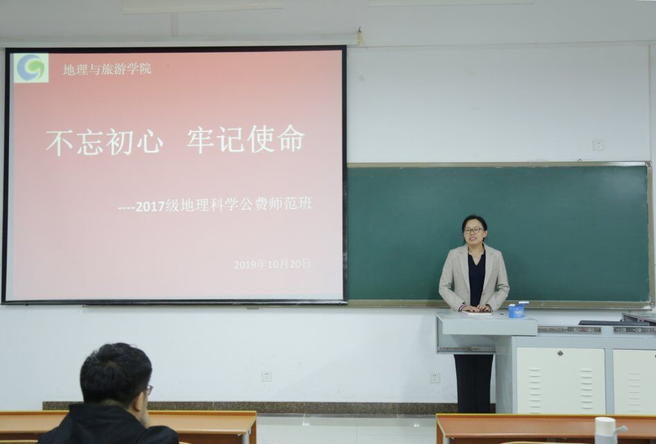 为深入基层,了解班级学生发展情况,加强班级集体凝聚力,推进“不忘初心、牢记使命”主题教育不断推向深入,10月20日,地理科学公费师范班于S201召开主题班会。本次班会由我校学生工作处处长姜美颖主讲,2017级地理科学公费师范生全体成员参加。