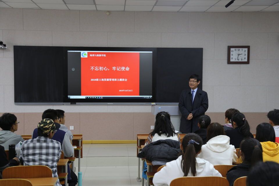 为加强老师与同学的交流沟通,增强班级凝聚力。10月25日,2019级土地资源管理班于S202召开“不忘初心、牢记使命”主题班会。院长张全景、2019级土地资源管理班班主任马运佳应邀出席会议,2019级辅导员李梅主持会议,2019级土地资源管理班全体成员参加。