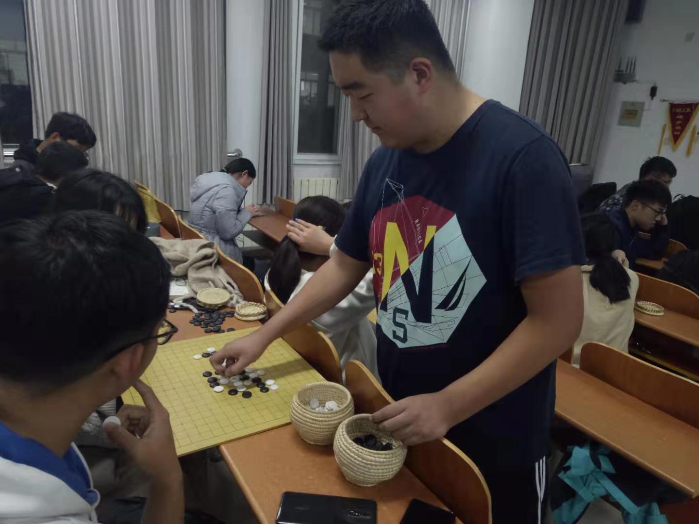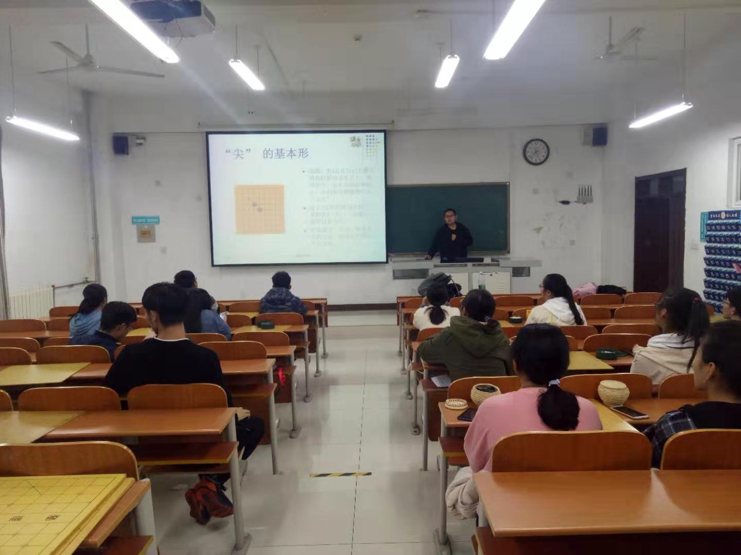 为使更多同学了解围棋,丰富同学们的课余生活,博弈棋社和纵横棋社于11月9日至11月30日每周六晚,联合在S201举行围棋授课系列活动,博弈棋社策划部部长陈立、纵横棋社活动部干事李天开担任此次活动的主讲人,全校围棋爱好者参加。