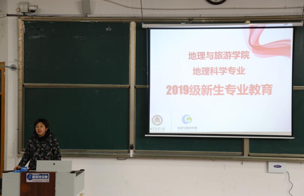 于E101成功举办2019级地理科学专业新生专业教育指导会。会议由院长助理于伟主讲,2019级辅导员李梅主持,班主任、相关专业教师出席,2019级地理科学专业学生参加。