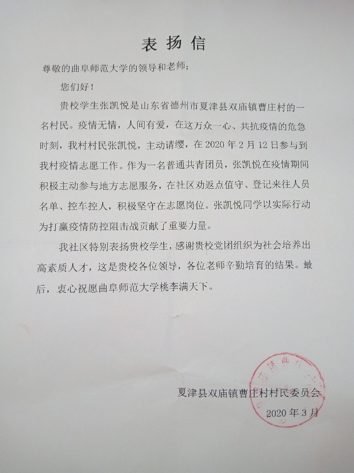 收到了来自德州市地方村委的感谢信,感谢澳洲女足直播