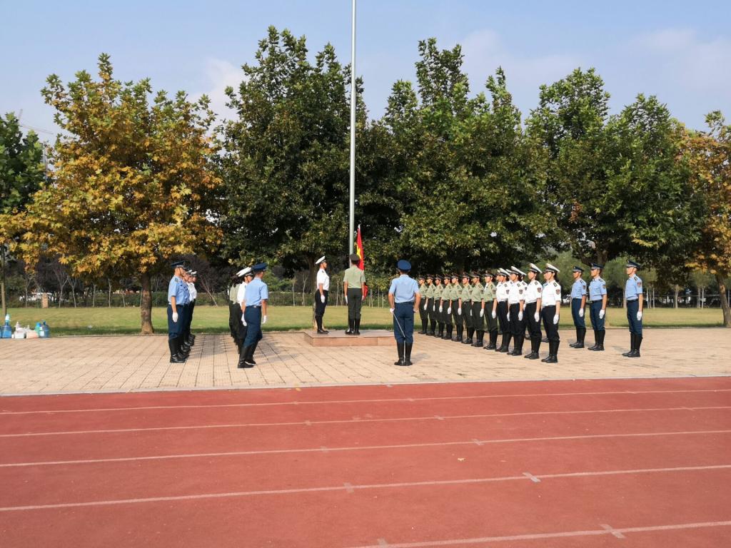 大会在雄壮的国歌声中拉开帷幕。全体人员面向国旗,高唱国歌,庄严肃穆,激情澎湃。学校领导扈庆学、宋国栋宣读军训期间总指导,并希望各位同学在自身条件允许的情况下,认真完成大学中的第一步。
