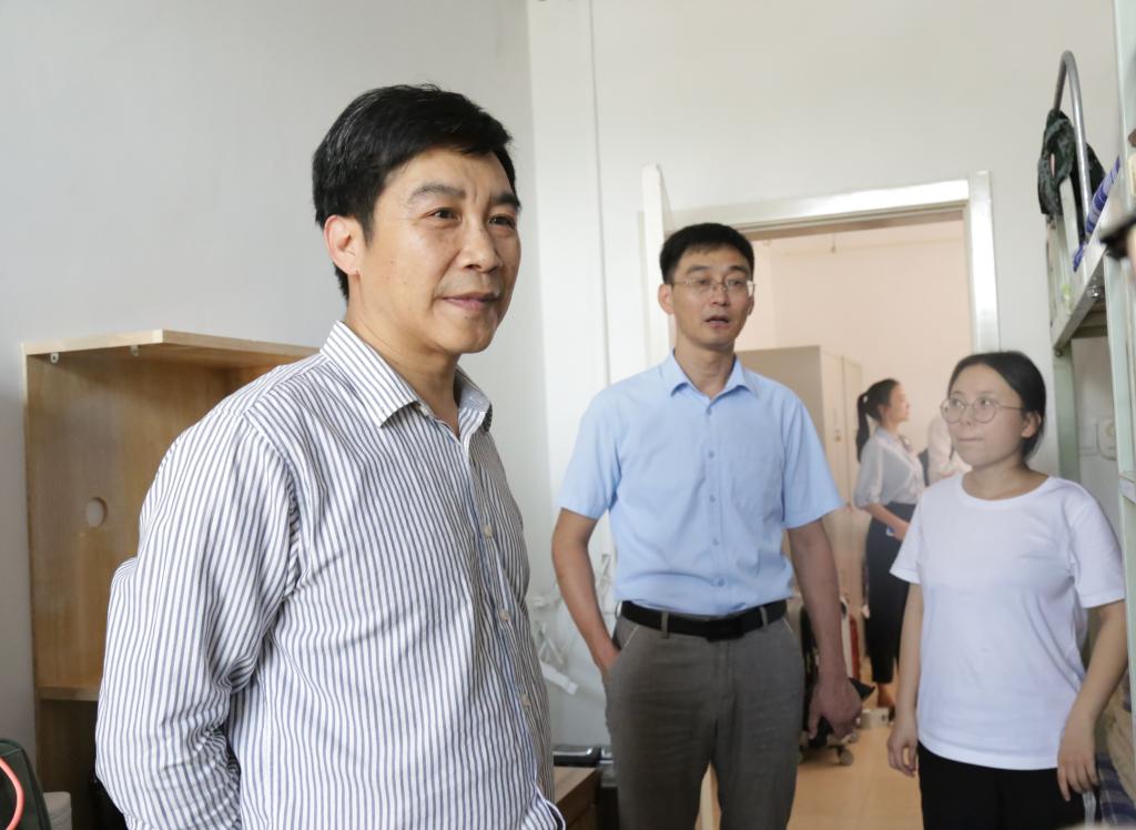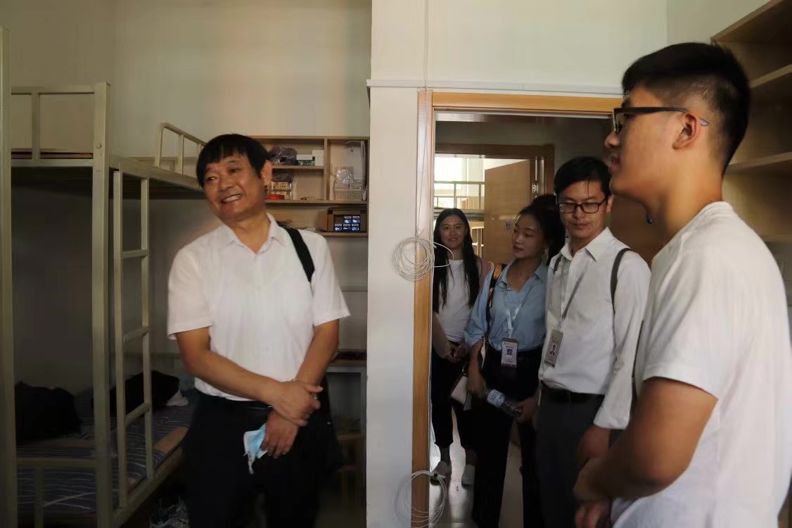 领导和蔼可亲的交流消解了同学们初来乍到的陌生与不适。苏占兵关切地询问同学们初入校园的体验以及对宿舍环境的适应程度,他希望同学们可以在未来的大学生活中学会独立自主,与舍友同学友爱相处、互相帮助。张全景对异乡求学的同学表示热切的关心,提醒他们注意不同地区气候及饮食上的差异,并嘱托他们及时反映生活中遇到的问题。刘伟提醒同学们在大学期间也不要放松学习,勤勉努力,不辜负家长和老师的期望。