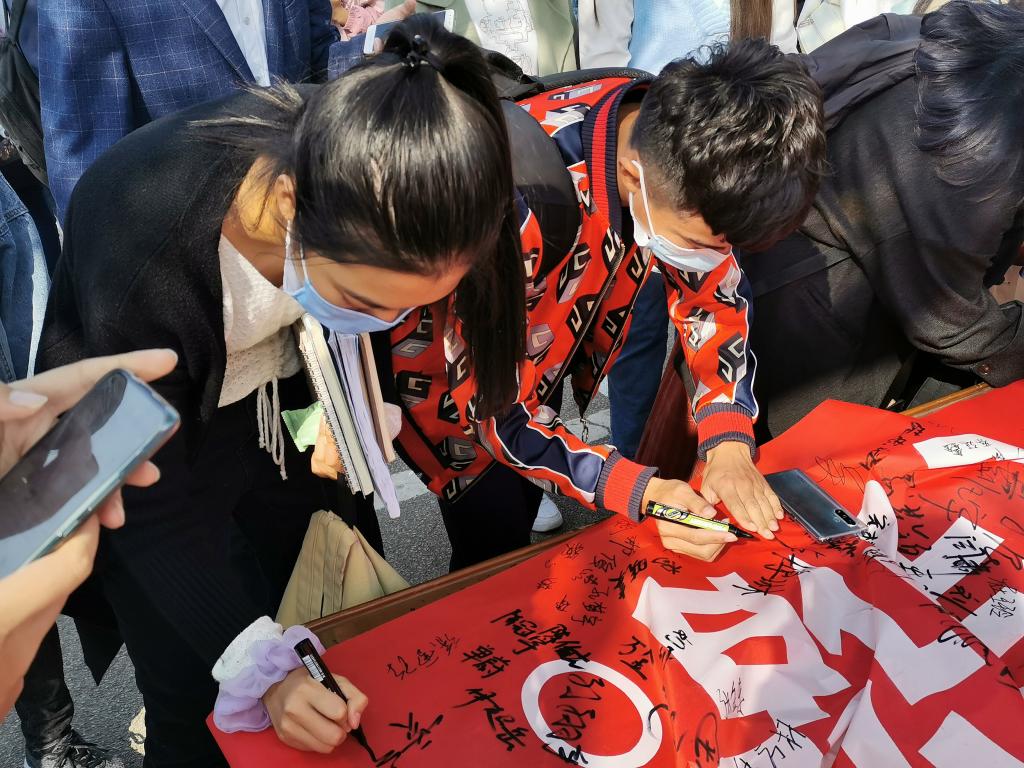 同学在2017级辅导员董青,2020级辅导员田青、张乃宁带领下积极参加。