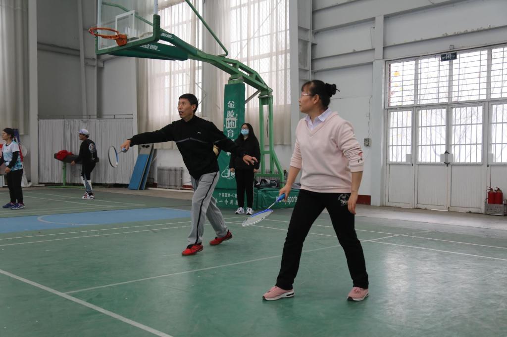 羽毛球队进行比赛。比赛共分男子双打、女子双打、女子单打、男子单打四个项目。拉吊、扣杀、网前突击,羽毛球在赛场上来回翻飞,参赛选手你来我往,上演一幕幕精彩绝伦的对攻好戏。