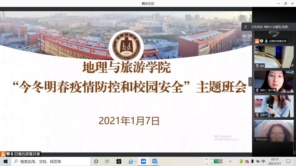 各年级于20201年1月6-7日召开线上“今冬明春疫情防控和校园安全”主题班会。会议由各年级辅导员主持,全体同学参加。