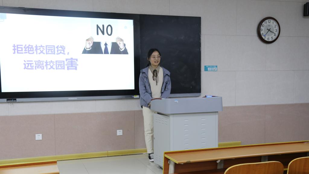 宣讲会上,宣讲团成员闫靖宇从什么是校园贷、校园贷诈骗的常见形式、怎样预防校园贷诈骗三个方面展开宣讲。同学们认真听讲,积极互动,纷纷表示大学生应理性消费、合理消费,增强防范意识,提高识别校园贷骗局的能力。
