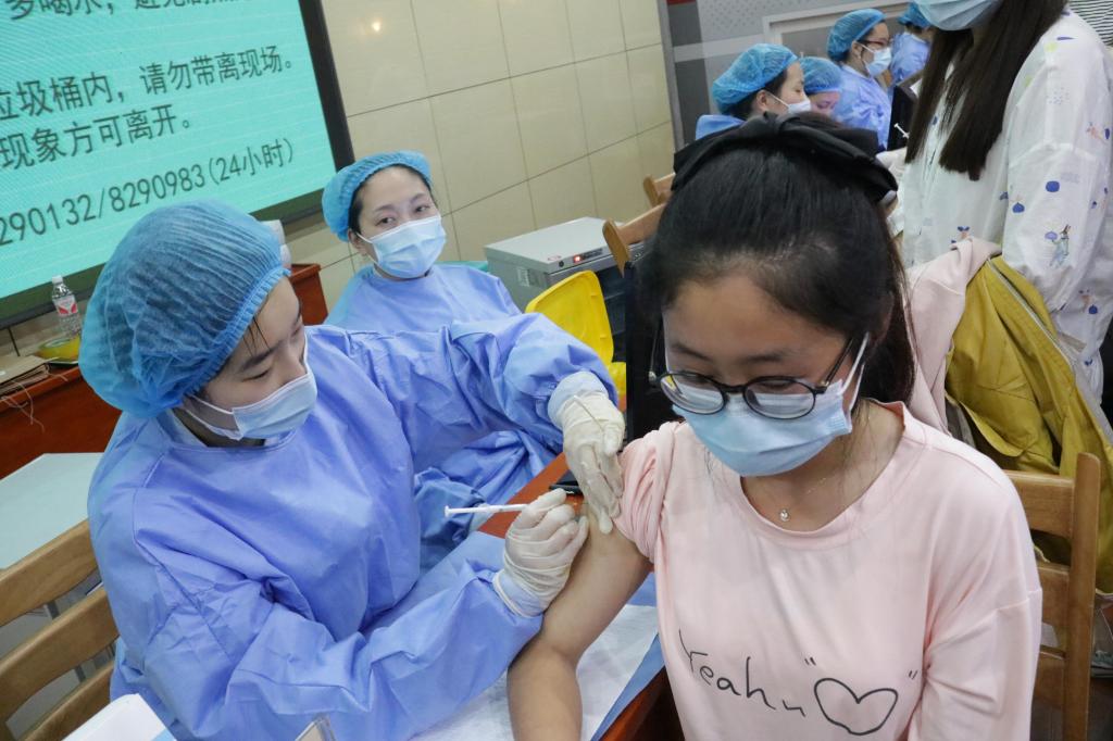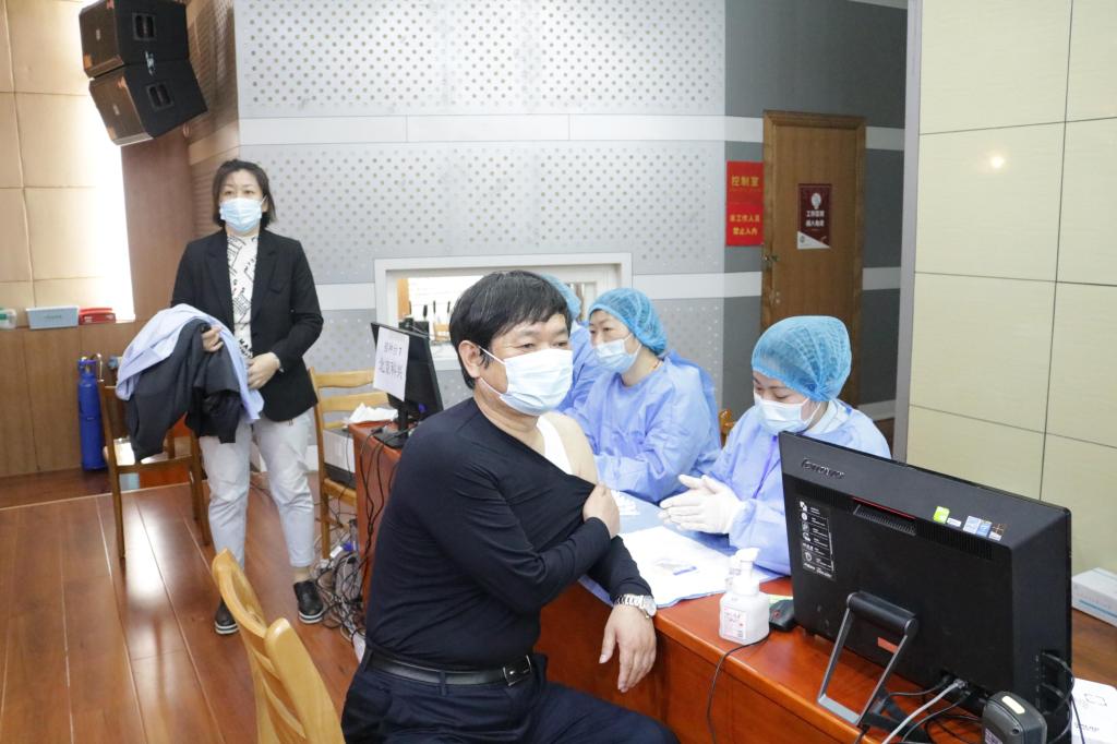 在曲阜师范大学(日照校区)图书馆报告厅开展集中接种第二剂新冠疫苗工作。