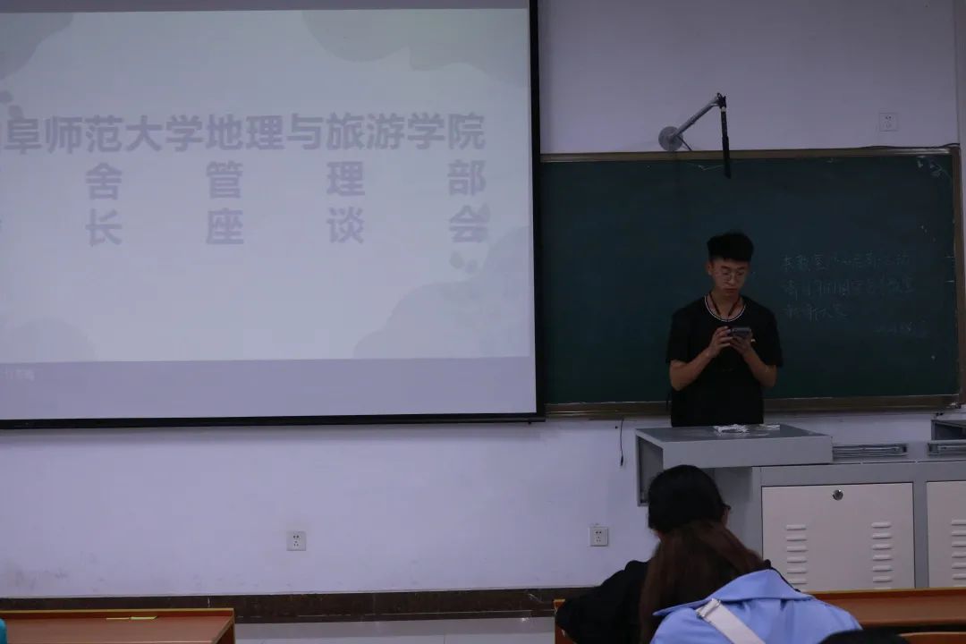 于S314召开舍长座谈会。座谈会由宿舍管理部主持,2020级辅导员田青出席,各宿舍长参加。
