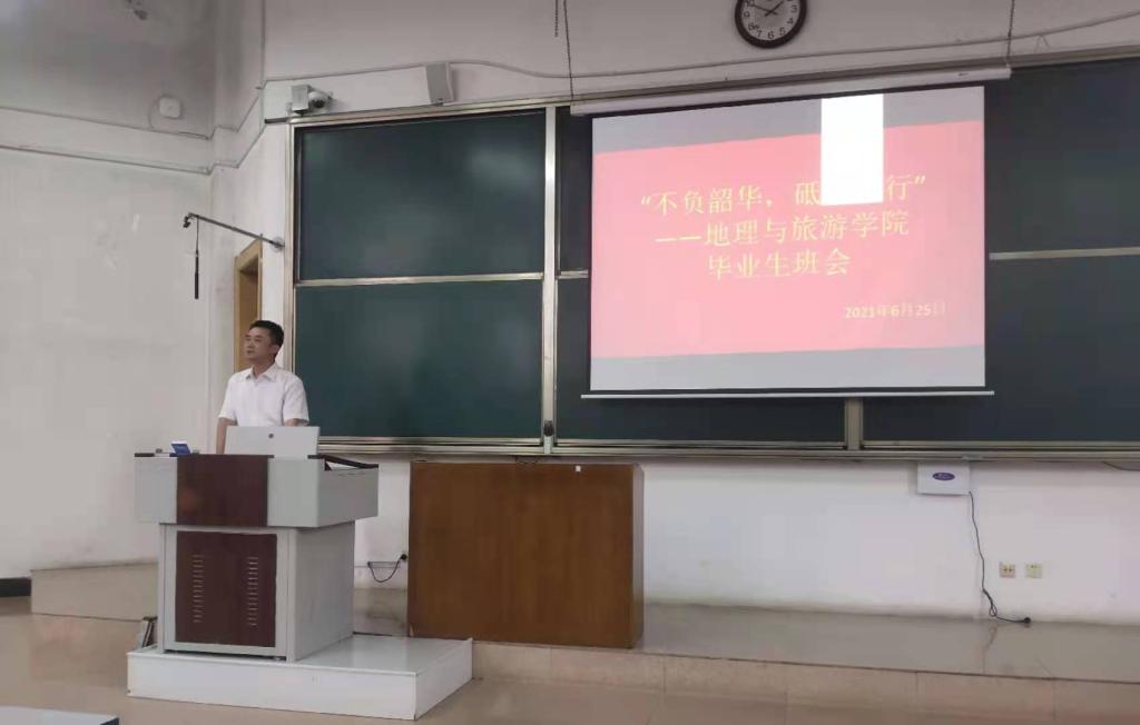 党委副书记刘伟、辅导员董青主持班会,2021届毕业生参加。