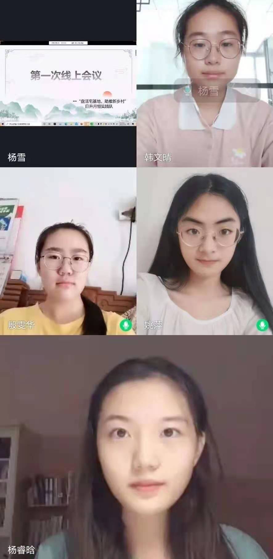 7月16日,为加强队员对本次实践活动的了解,鼓舞队员士气,明确工作安排,细化工作分工,日升月恒实践队举行了第一次线上会议。本次会议实践队队员全员参加,由队长杨雪组织主持,各队员踊跃发言。
