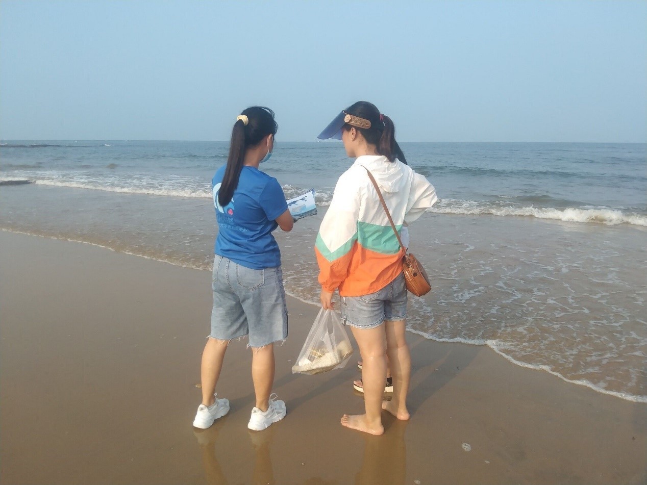 迎着拂面的海风,海水的气息扑面而来,小海螺曲阜师范大学青春服务队成员来到美丽的滨海景区—山海天阳光海滩景区。在炎热的夏日,志愿者们不畏高温,不辞辛劳,身穿蓝色小海螺队服,在海滩上向市民和游客进行细致耐心的文明旅游宣传,并发放旅游地图、旅游折页,提醒来此处游玩的游客提前了解疫情防控规定,遵守景区“预约、错峰、限流”措施,遵守旅游活动中的疫情防护要求和文明旅游规定,不随手乱扔垃圾,爱护生态环境,积极营造文明有序的旅游环境。针对游客们提出的问题,志愿者黄一凡对其进行耐心细致的解答,并热情的介绍日照的著名景点,外地游客连连称谢。志愿者们积极为市民和游客提供问询服务,展示了文明有礼的志愿服务青年形象,赢得了游客的赞赏。“来到美丽的海滩,整个人心情都很放松,也会想要主动爱护生态环境,维护这里的碧海蓝天。”,游客王女士说。在宣传文明出游理念的过程中,志愿服务者们明显感受到,随着“绿水青山就是金山银山”理念的普及,人民群众保护自然环境的意识明显加强,构建人与自然和谐共生观念成效显著。