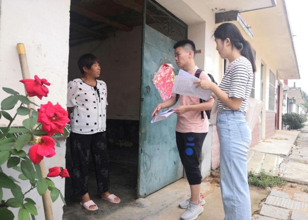 图为实践队员走访村民,进行农户访谈