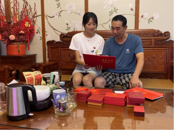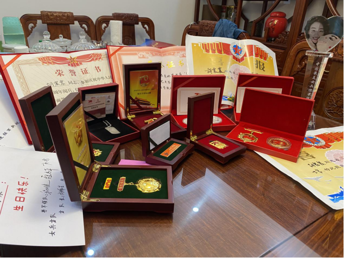 7月31日,实践队成员又来到老党员胡欣绪家中,进行第二次采访活动。映入眼帘的就是胡欣绪同志家门口的“光荣之家”牌子。在采访过程中,实践队成员了解到胡欣绪同志与其女儿胡震震都为中国共产党员。据了解,女儿胡震震不仅是一名优秀的青年党员,也是一名优秀的中国人民解放军。在父亲胡欣绪的影响下,女儿胡震震从小就耳濡目染,志愿加入中国共产党并立志成为中国人民解放军的一员。于是,胡震震同志在高中毕业后就响应国家号召应征入伍,成为一名光荣的人民解放军。受到父亲胡欣绪以及家人的支持,胡震震报名参加了中华人民共和国成立70周年阅兵仪式的选拔。胡震震凭借自己坚强的意志以及日复一日的努力刻苦训练,终于通过了阅兵仪式的选拔,成为阅兵仪式方队女兵中的一员,走过天安门,接受了党和国家的检阅。而后,胡欣绪向实践队成员展示了胡震震在军队所获得的荣誉证书以及奖章。这一张张荣誉证书和一枚枚荣誉奖章都记忆着胡震震同志既作为一名党员又作为一名军人所付出的艰辛与汗水。只要有了党员和军人的身份,就要扛起作为党员和军人的责任。从胡欣绪与胡震震父女身上,实践队成员看到了学习和传承党史是需要一代又一代党员的不懈努力。老一辈的党员在思想和精神上给予新一代党员动力,而新一代党员又给老一辈的党员带来创新与新的感想。采访过后,实践队成员向胡欣绪一家表示了尊崇与敬意。